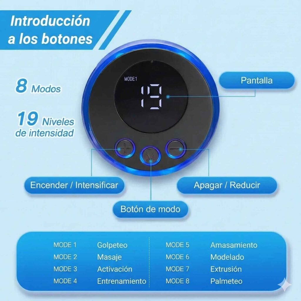 Con 10 modos y microcorrientes EMS, este masajeador compacto recrea 200 masajes en 15 minutos, mejorando textura, circulación y firmeza donde quiera que estés.